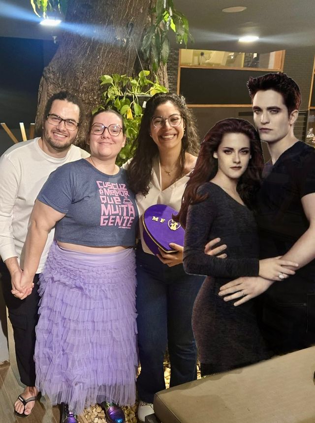Adorei ler a história de vocês dessa forma, a doçura que sempre existe quando se fala amor me encanta!! A propósito, o site está lindo, fazer parte disso está sendo muito especial e ja to ansiosa para comemorar essa união! Agora só não posso deixar de comentar o quanto fiquei impactada com a parte da maratona de Crepúsculo! Que bom que chamamos eles para tirar uma foto com a gente aquele dia! E quem disser que é montagem tá mentindo